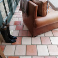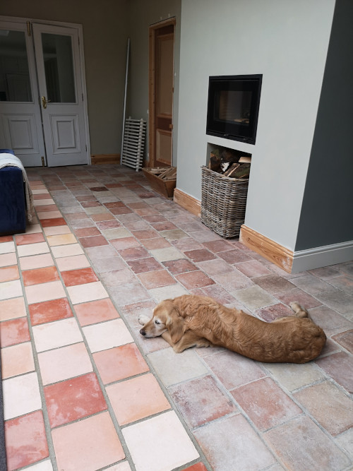 The mixed colours of the pamments in the extension were chosen to match in with the original very old ones in the main body of the house.