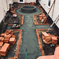 Creative use has been made of Garden Grade Suffolk Terracotta and Ely Red pamments (with a few odd colours too) combined with other tiles.