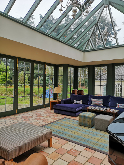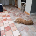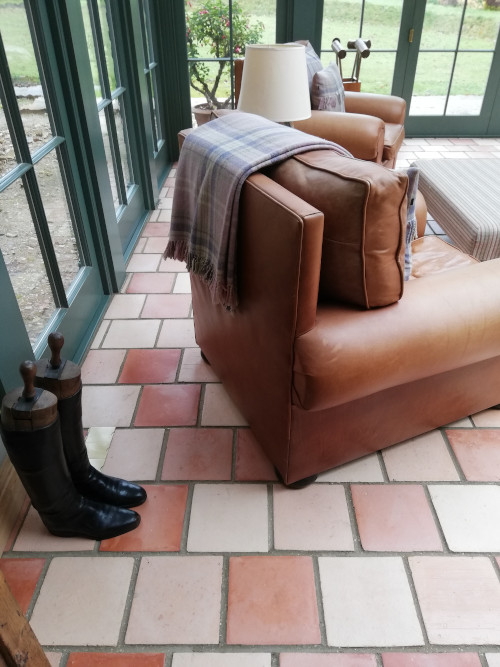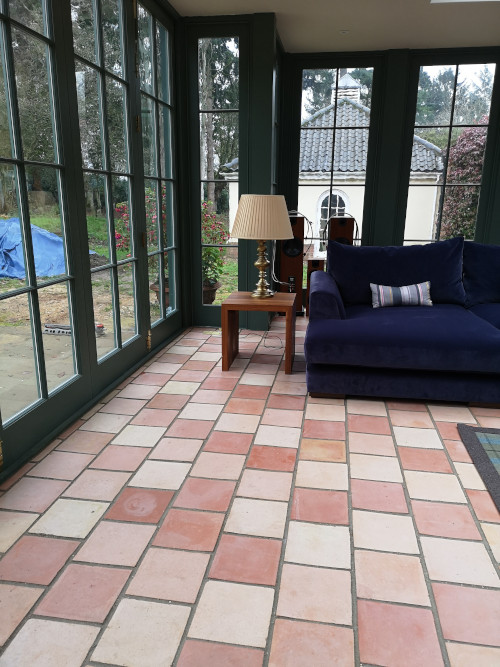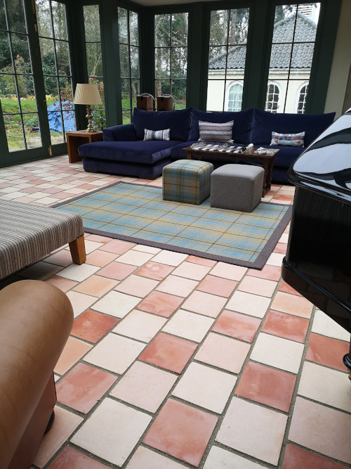 The mixed colours of the pamments in the extension were chosen to match in with the original very old ones in the main body of the house.