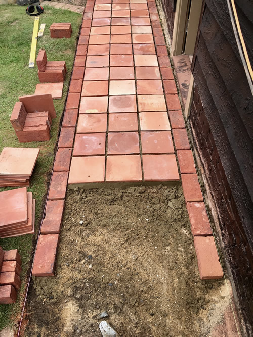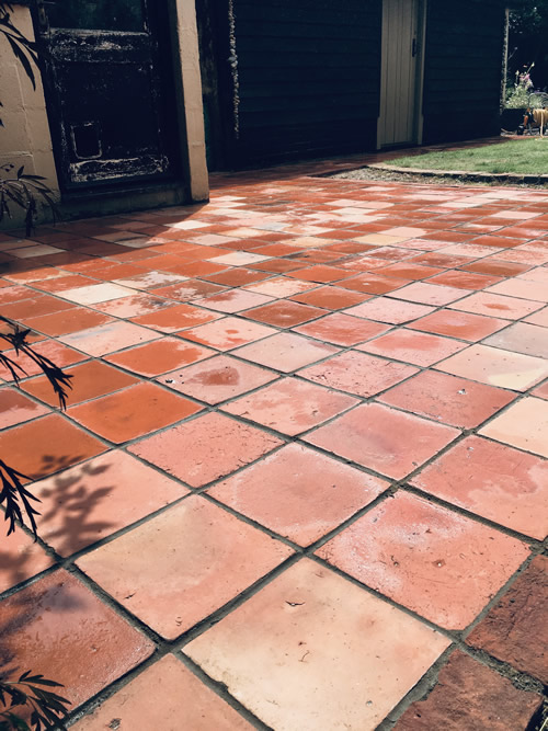 The patio shows how the flaws can be used to advantage to create a timeless weathered look which fits perfectly with the vernacular buildings.
